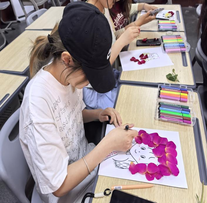 2025年5月,农民影视在线观看举办了“花影寻我:自花像—艺术奇遇”活动,引导学生在忙碌的学习生活中,通过亲近自然重新认识自我,感受自然之美。