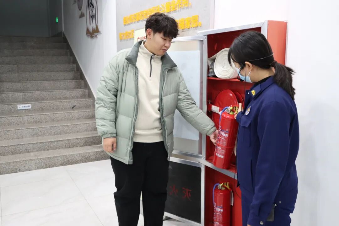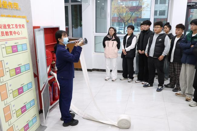 活动中,讲解员围绕火灾成因、灭火器与室内消防栓操作以及室内火场逃生自救等关键环节,依托基地实景设施进行系统讲解与演示。同学们认真聆听,积极参与,通过亲手操作、亲身体验,有效掌握了消防技能要点,实现了从“知其理”到“行其法”的深化,安全意识与实战能力得到显著提升。