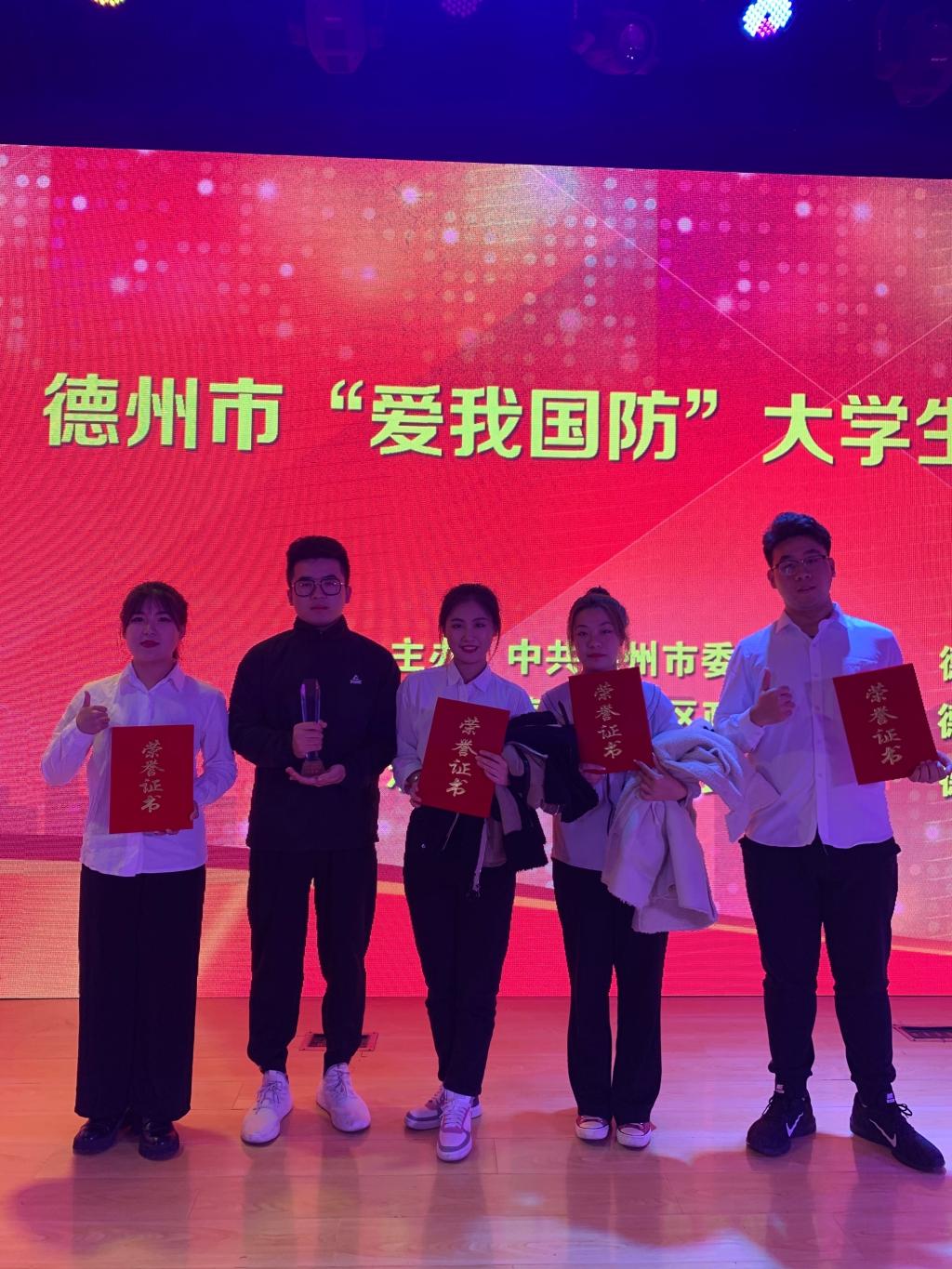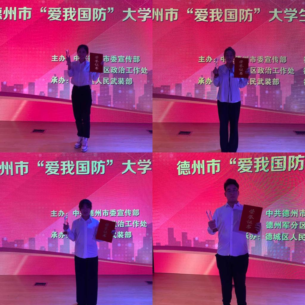 比赛结束,他们没有辜负老师和同学们的期望,荣获了德州市“爱我国防”大学生主题演讲比赛一等奖,赢得了评委老师和观众们的高度评价,并顺利进入山东省“爱我国防”演讲比赛。希望他们在接下来的比赛中再接再厉,再创佳绩!