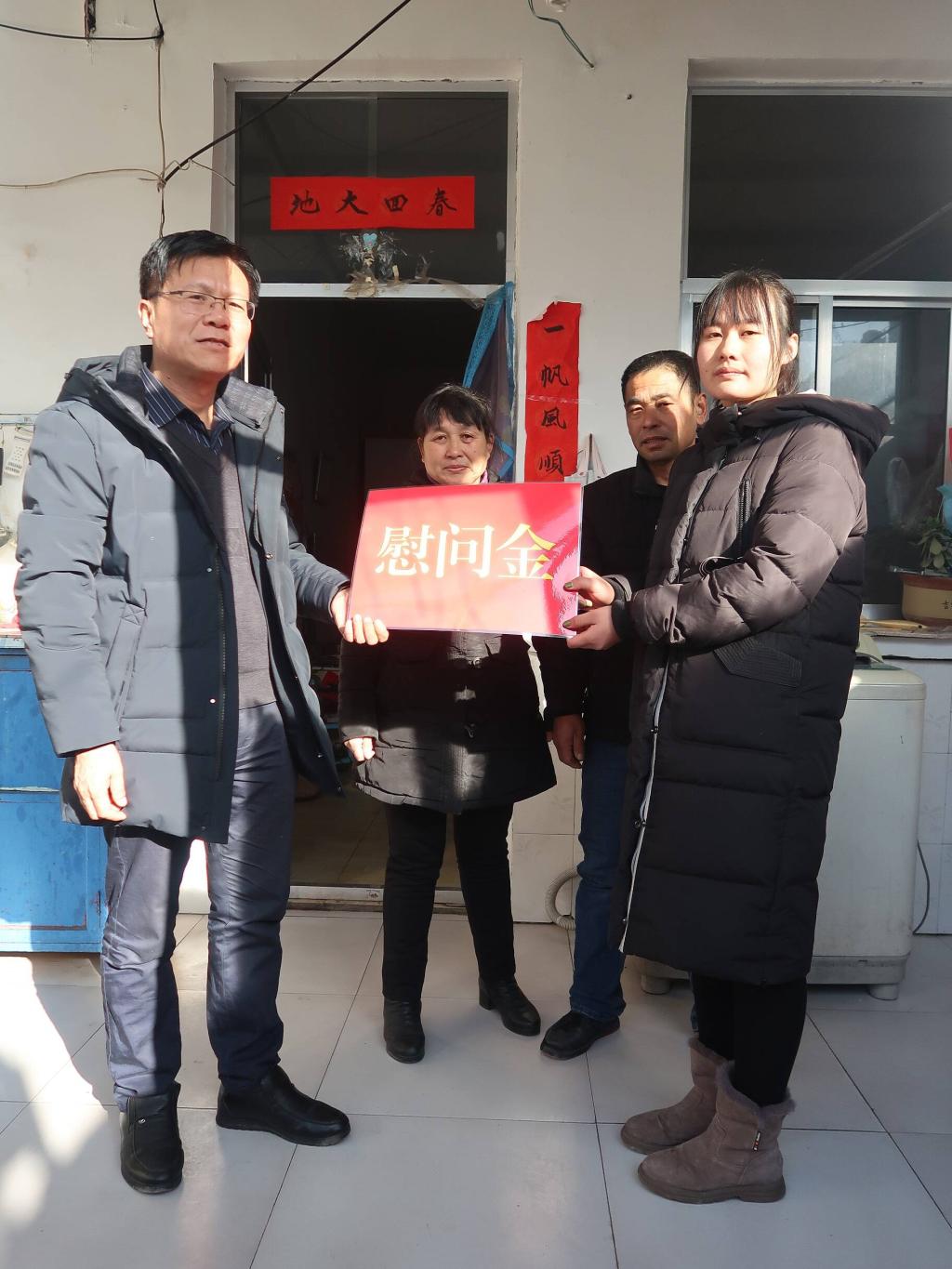 1月8日,德州学院农民影视在线观看党总支书记刘志华等人驱车前往临邑县天一村,在寒潮天气里,给2019级家庭困难学生,送去冬日里的温暖。