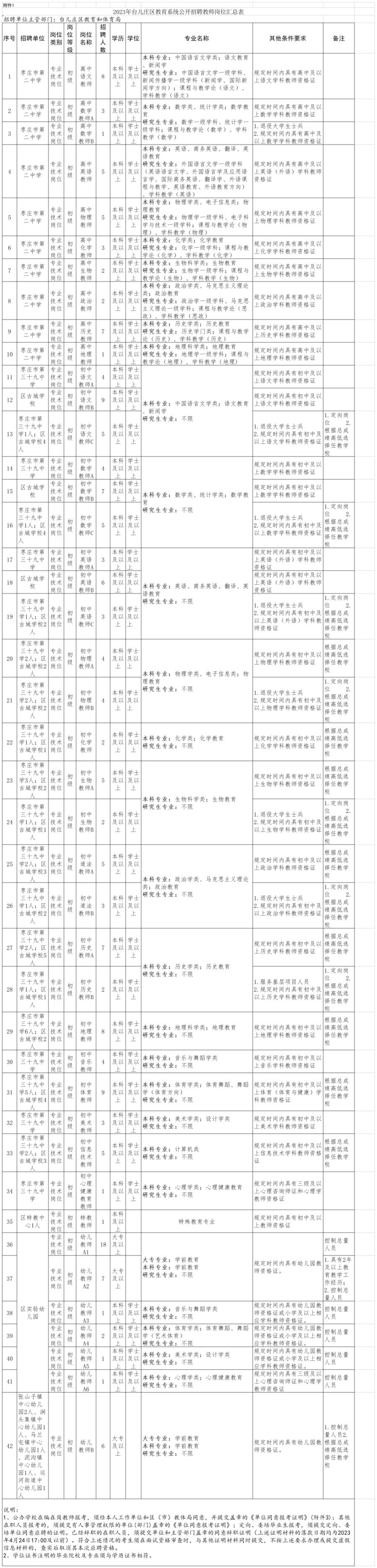 (四)招聘岗位要求的专业、学历学位、教师资格条件,详见《2023年台儿庄区教育系统公开招聘教师岗位汇总表》(附件1,以下简称《岗位汇总表》);