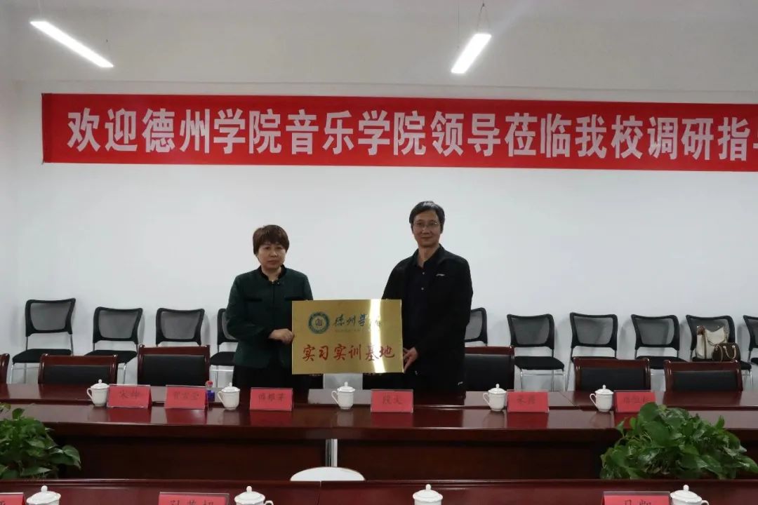 各学校领导对我院一行人员的到访表示热烈欢迎,之后双方围绕就业基地建设、毕业生人才优选等方面进行探讨。一致表示,将以本次访企拓岗促就业专项行动为契机,加强联系,深化合作,共同做好优秀人才的选拔和培养,积极推进艺术教育的优质发展,为更多优秀学生搭建就业创业的高质量平台。最后,双方领导共同签订协议,并为德州学院就业基地挂牌。